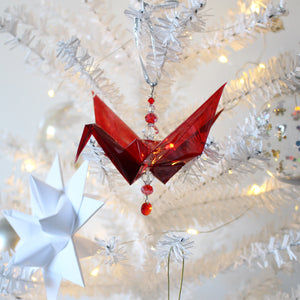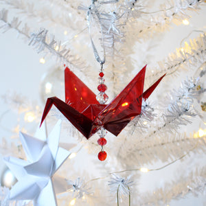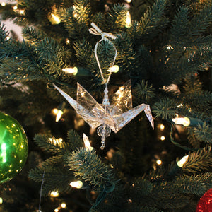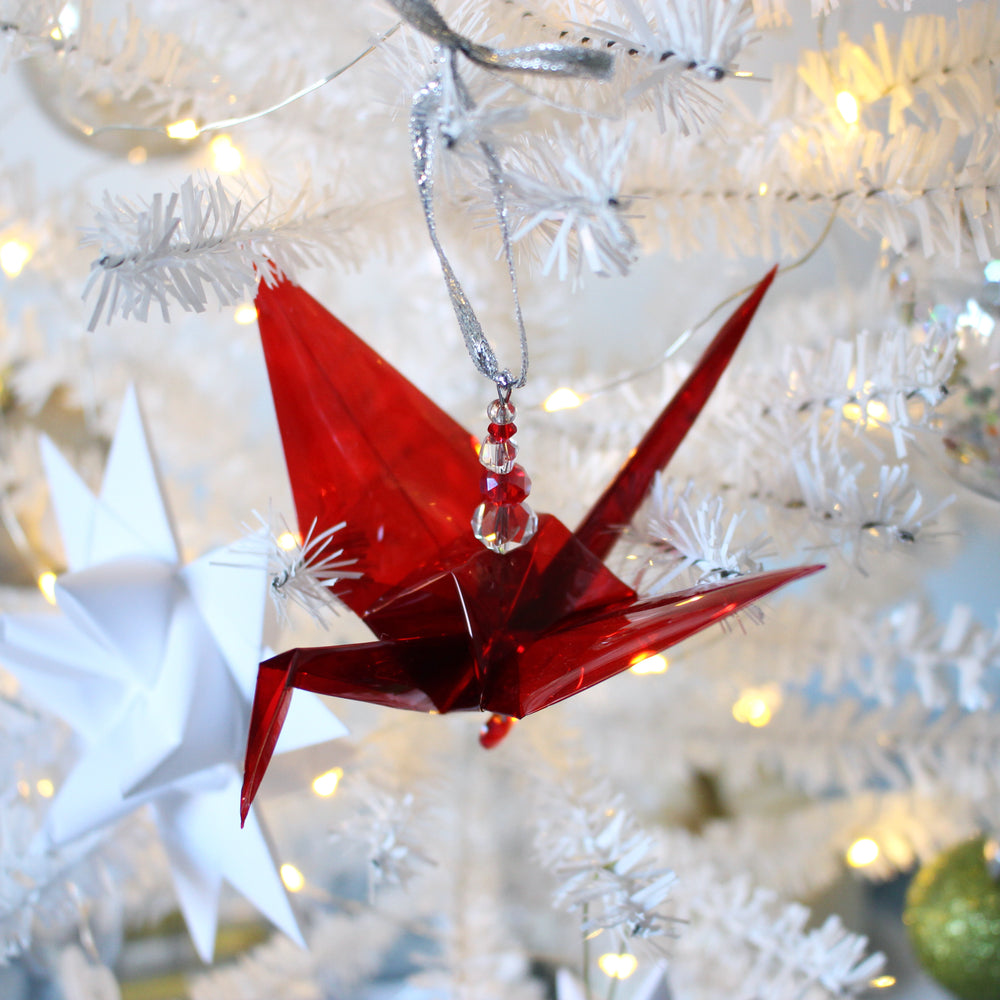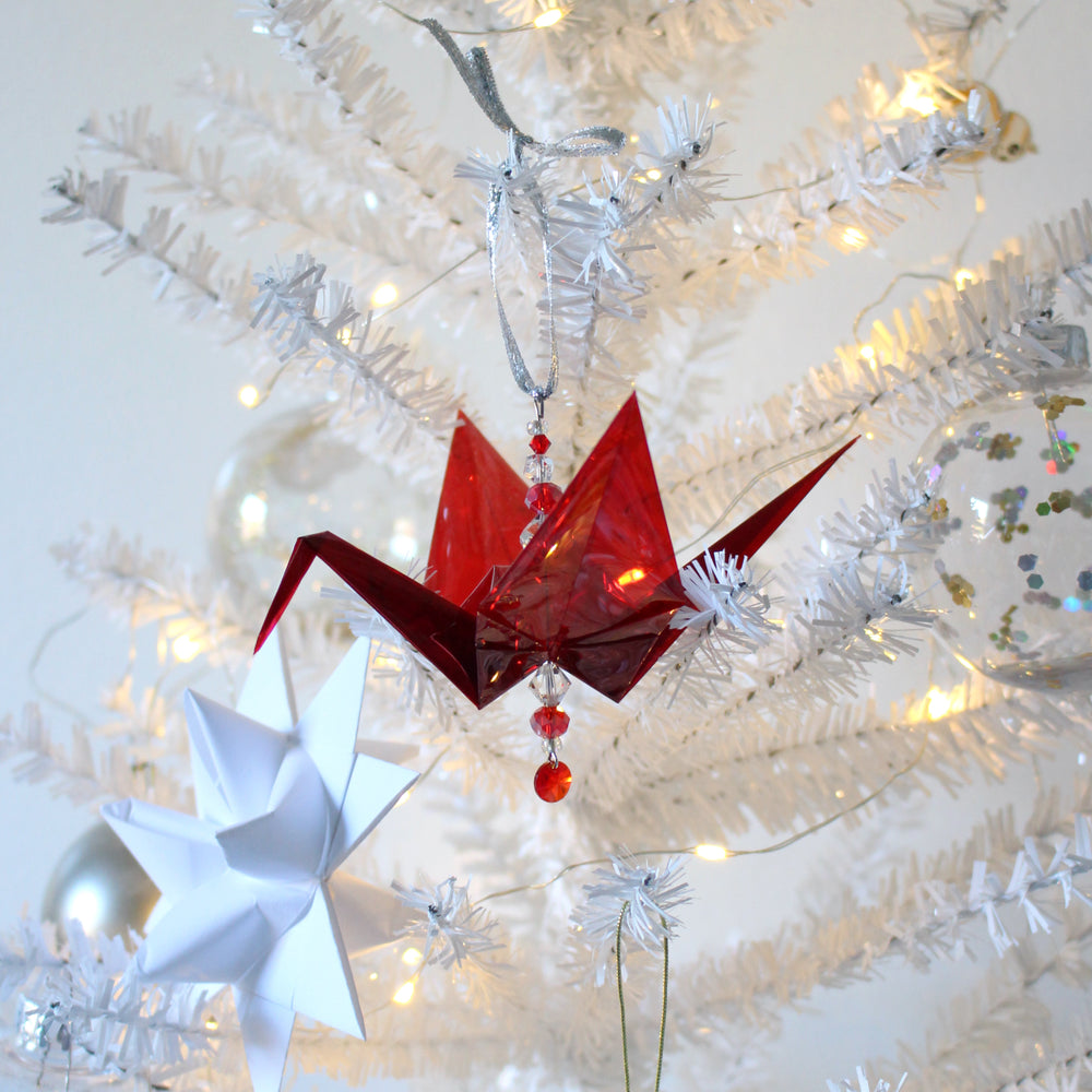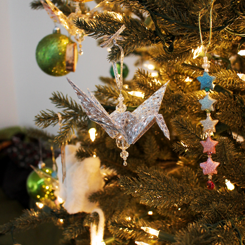 Origami Crane Ornaments that are sure to fill everyone with awe and wonder as they add some joy to your tree this year. These ornaments are handmade, and are exclusive to The Timeless Crane shops.