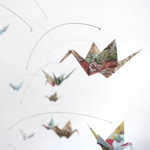 This mobile provides a great way to accent a room in your home, liven up an office, provide you with a way to relax at work, decorate a child's bedroom, or turn a nursery into a magical place. Babies are fascinated by the complexity of these mobiles and the way they move. Your baby will happily gaze up at a collection of intricately folded paper models that move freely in any direction. The birds are always in kinetic motion even when the air is still, and the slightest breeze makes them dance. Watching the origami paper mobile in motion is so relaxing and intriguing - leaving anyone guessing the path the models will take next.