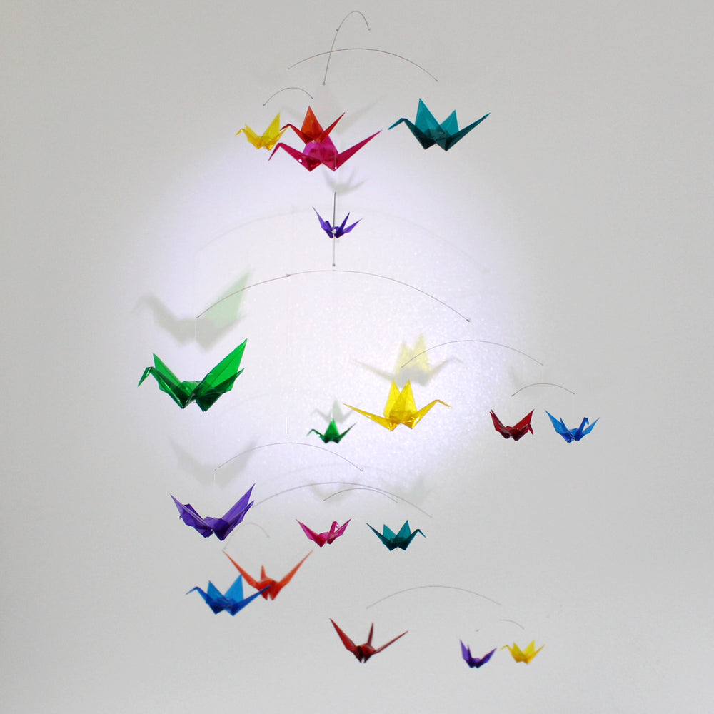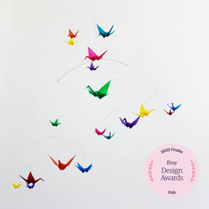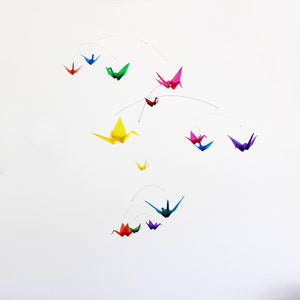 This mobile provides a great way to accent a room in your home, liven up an office, provide you with a way to relax at work, decorate a child's bedroom, or turn a nursery into a magical place. Babies are fascinated by the complexity of these mobiles and the way they move. Your baby willĀ happily gaze up at a collection of intricately folded paper models that move freely in any direction.